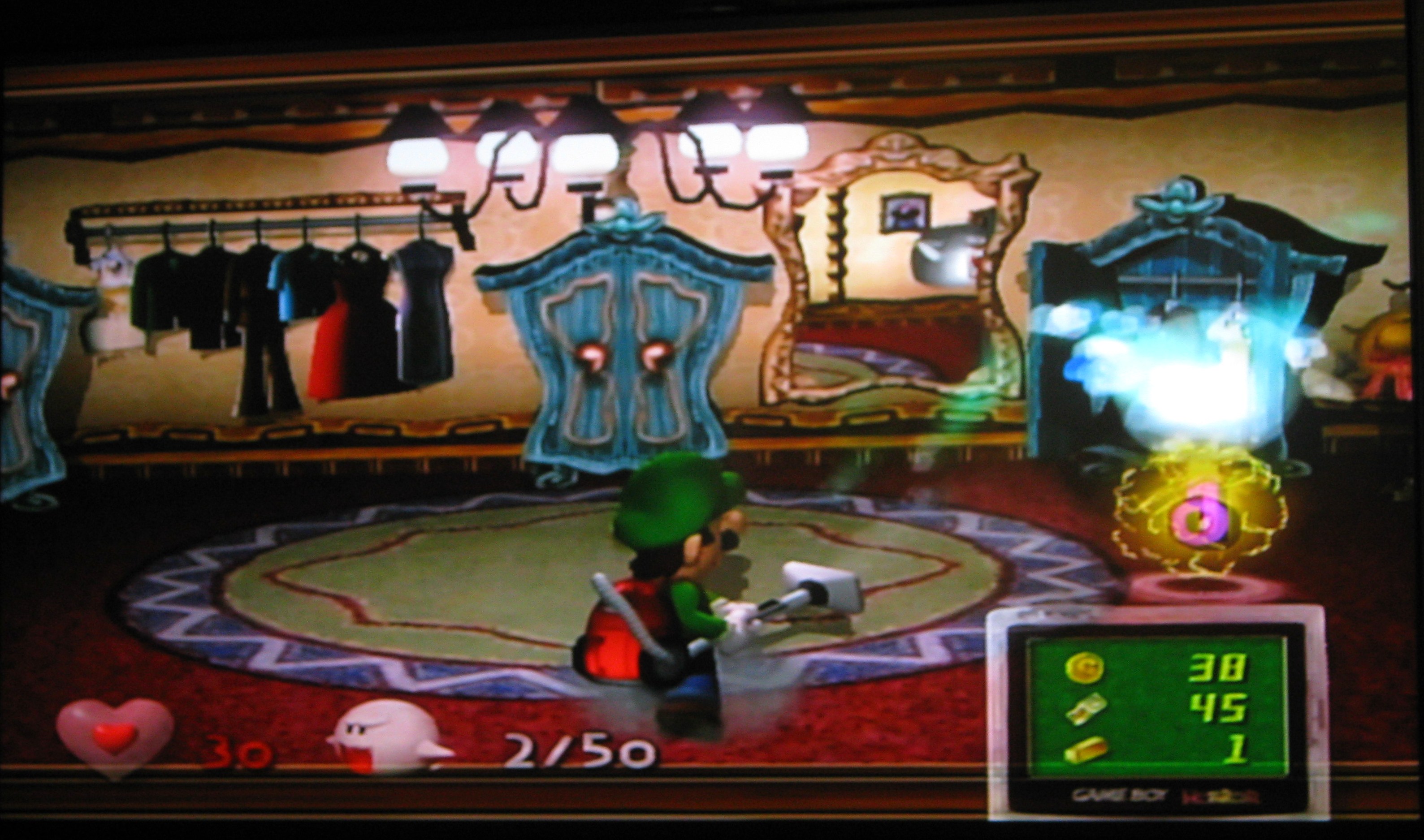 One major criticism that has been levied at Luigi’s Mansion is that it can be completed in about six hours. When you consider this was a full price title compared to shorter games like Portal it’s a fairly apt one. Then again, since it is a short game it is all neatly packed together with a decent scope for replaying. The main way you can measure your success in the game is the amount of booty you can secure whilst battling ghosts and vacuuming light-fittings. So logically the replay value comes in quicker exorcisms and more efficient cleaning. I wonder whether those six hours are for an experienced player who rushes through everything, or for someone who doesn’t know how to do all the puzzles and explores every nook and cranny. and there are a lot of smaller things hidden in the game to explore.