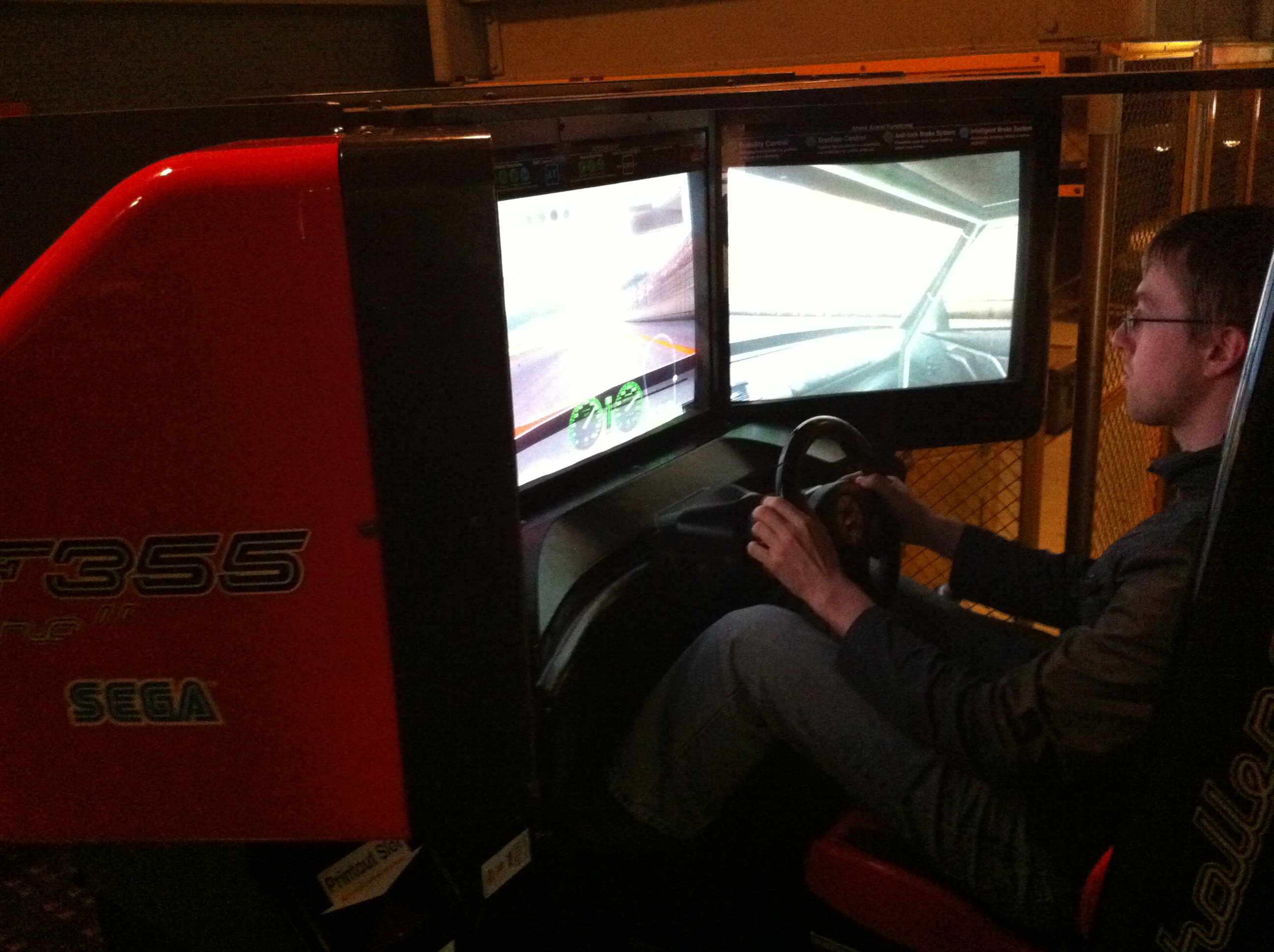 We checked, of course, out of curiousity mostly, and mostly didn’t find much. Until, that is, we exited Star Tours and (OMG) saw a surprising Ferrari F355 Challenge game! We, of course, immediately got our tokens and (after waiting for the five year old Italian girl to get out), sat down to play it. For most of it we did so being observed by that same five year old girl. I like to think we converted one.